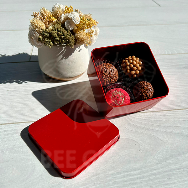Modelo: Caixa metal na cor vermelha.