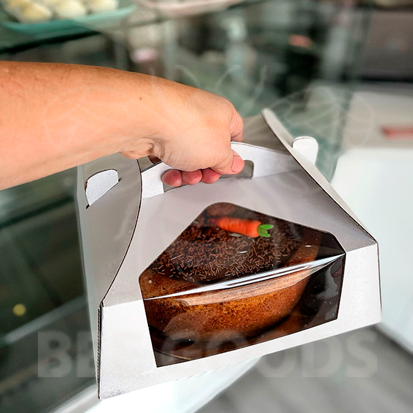 Caixa para bolos e tartes, 24x24x10cm com janela, branca, Pack 10 unidades.