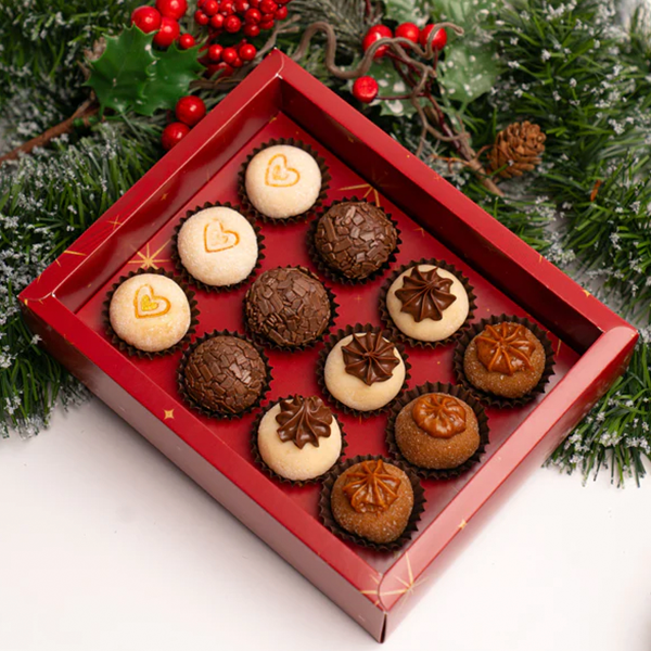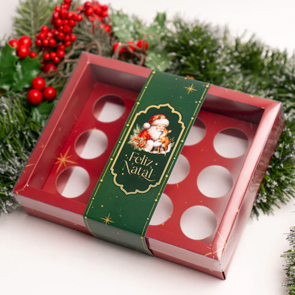 Caixa de Natal Vermelha 12 brigadeiros com Cinta, Linha Nostalgia, Pré-venda